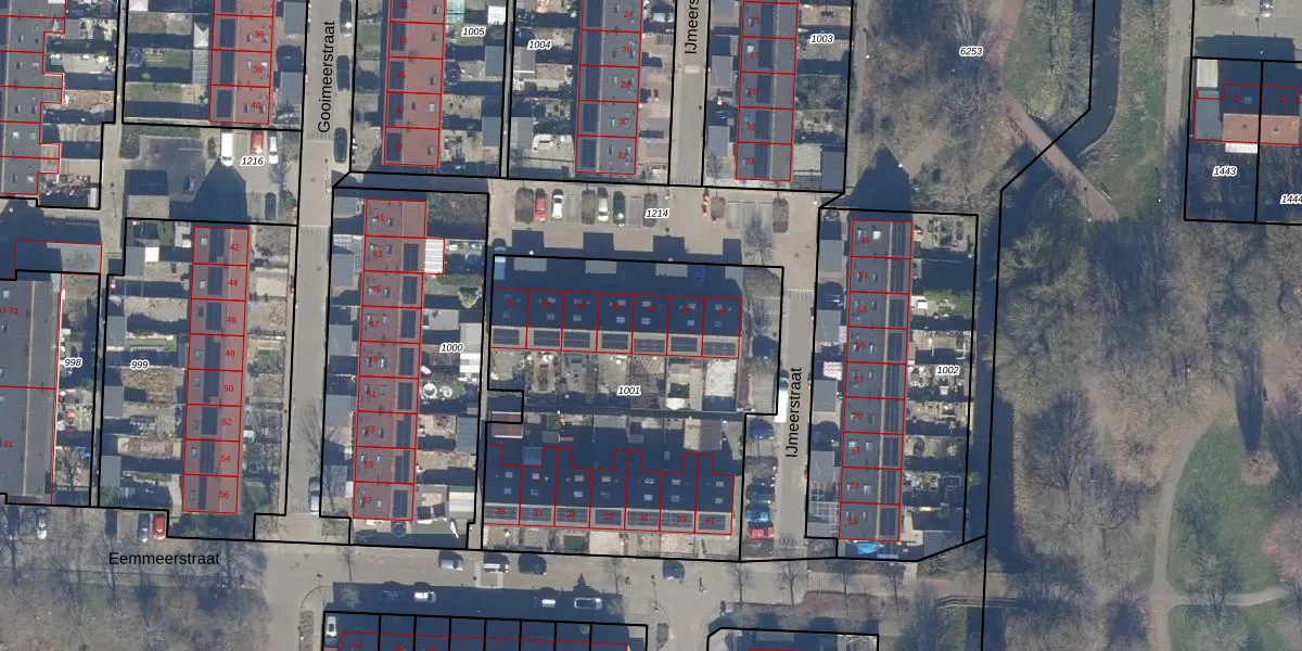 Het perceel waarop IJmeerstraat 42 staat heeft een oppervlakte van 1886 m². Dit is een zeer groot perceel. De perceeloppervlakte wordt geregistreerd door het Kadaster. Gedetailleerde informatie over de maten van dit perceel kunt u vinden in het rapport Kadastrale kaart met maatvoering van IJmeerstraat 42.