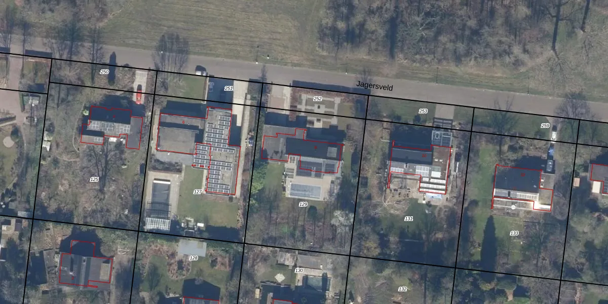 Het perceel waarop Jagersveld 8 staat heeft een oppervlakte van 1582 m². Dit is een zeer groot perceel. De perceeloppervlakte wordt geregistreerd door het Kadaster. Gedetailleerde informatie over de maten van dit perceel kunt u vinden in het rapport Kadastrale kaart met maatvoering van Jagersveld 8.