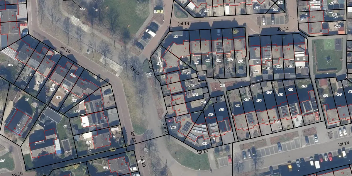Gebruik de zoekbalk of klik op een perceel voor informatie over de adressen binnen dit perceel.
