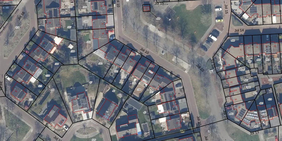 Gebruik de zoekbalk of klik op een perceel voor informatie over de adressen binnen dit perceel.