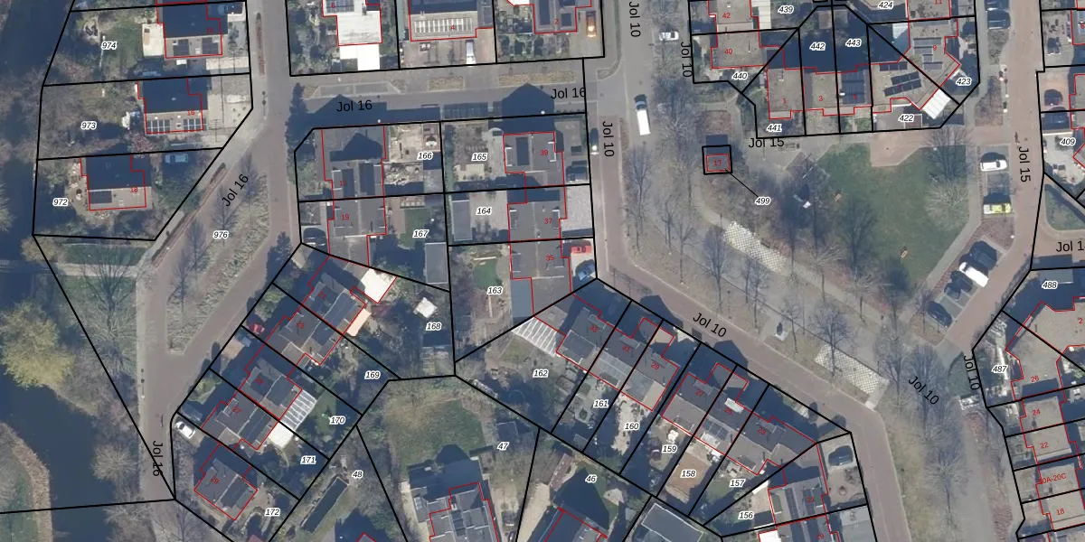 Gebruik de zoekbalk of klik op een perceel voor informatie over de adressen binnen dit perceel.