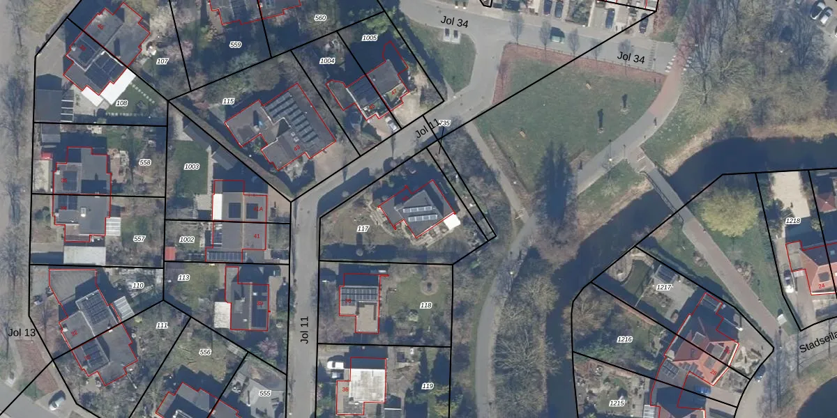 Het perceel waarop Jol 11 40 staat heeft een oppervlakte van 705 m². Dit is een groot perceel. De perceeloppervlakte wordt geregistreerd door het Kadaster. Gedetailleerde informatie over de maten van dit perceel kunt u vinden in het rapport Kadastrale kaart met maatvoering van Jol 11 40.
