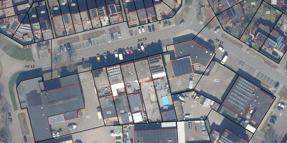 Jol 13 12 is gelegen op kadastraal perceel LLS00N553. Deze kadastrale aanduiding is uniek en wordt gebruikt door het Kadaster om eigendomsrechten en andere zakelijke rechten vast te leggen. Het perceel maakt onderdeel uit van de kadastrale gemeente Lelystad.