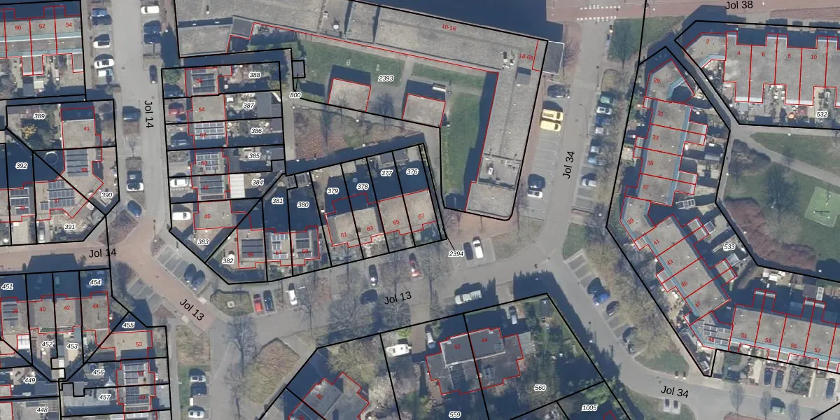 Gebruik de zoekbalk of klik op een perceel voor informatie over de adressen binnen dit perceel.
