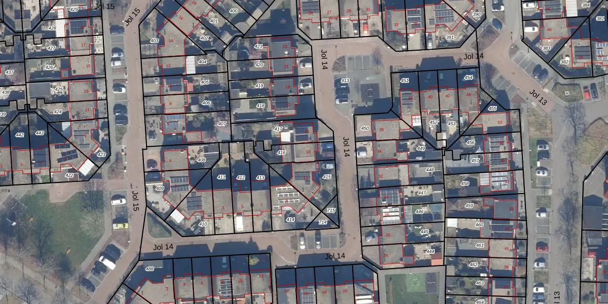 Het perceel waarop Jol 14 13 staat heeft een oppervlakte van 155 m². Dit is een middelgroot perceel. De perceeloppervlakte wordt geregistreerd door het Kadaster. Gedetailleerde informatie over de maten van dit perceel kunt u vinden in het rapport Kadastrale kaart met maatvoering van Jol 14 13.
