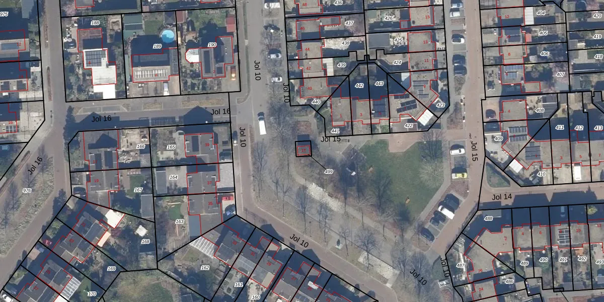 Jol 15 1-T is gelegen op kadastraal perceel LLS00N499. Deze kadastrale aanduiding is uniek en wordt gebruikt door het Kadaster om eigendomsrechten en andere zakelijke rechten vast te leggen. Het perceel maakt onderdeel uit van de kadastrale gemeente Lelystad.