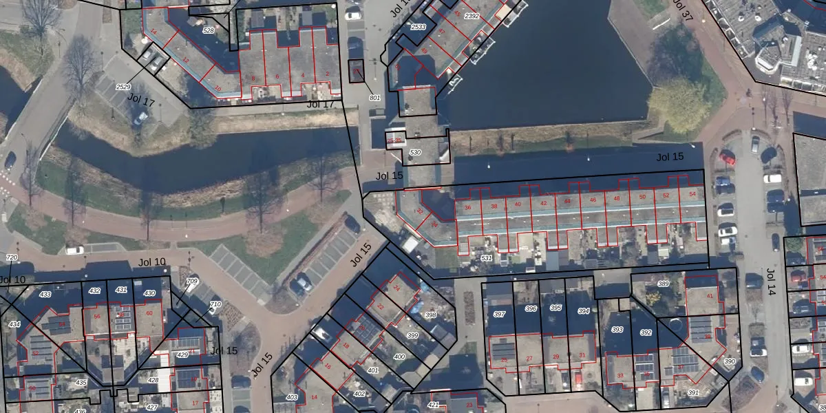 Jol 15 32 is gelegen op kadastraal perceel LLS00N531. Deze kadastrale aanduiding is uniek en wordt gebruikt door het Kadaster om eigendomsrechten en andere zakelijke rechten vast te leggen. Het perceel maakt onderdeel uit van de kadastrale gemeente Lelystad.