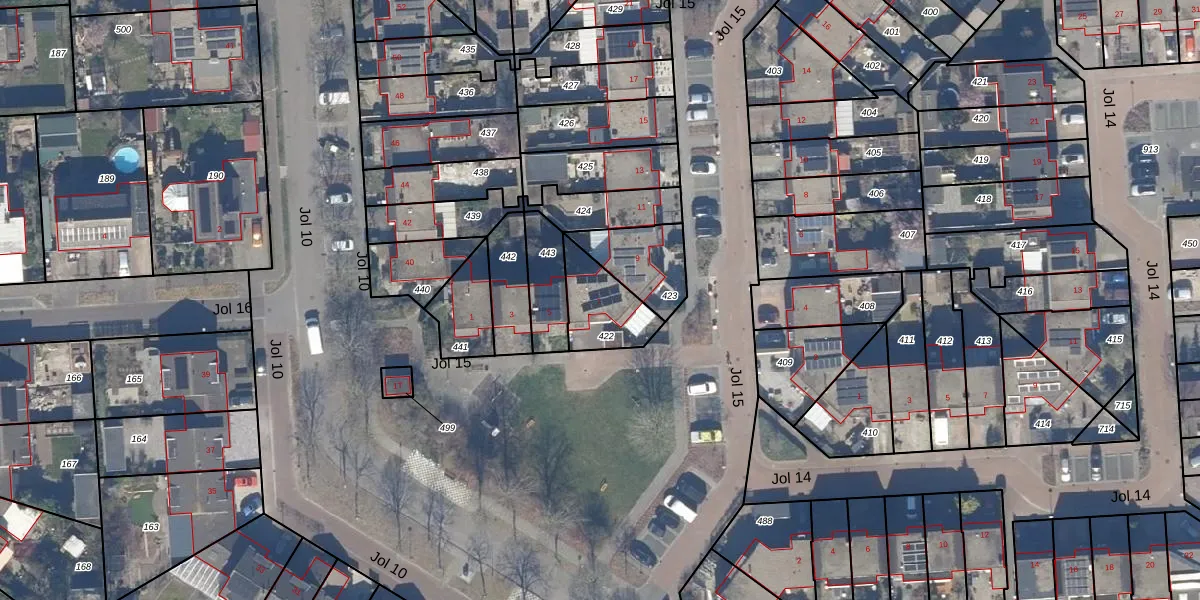 Gebruik de zoekbalk of klik op een perceel voor informatie over de adressen binnen dit perceel.