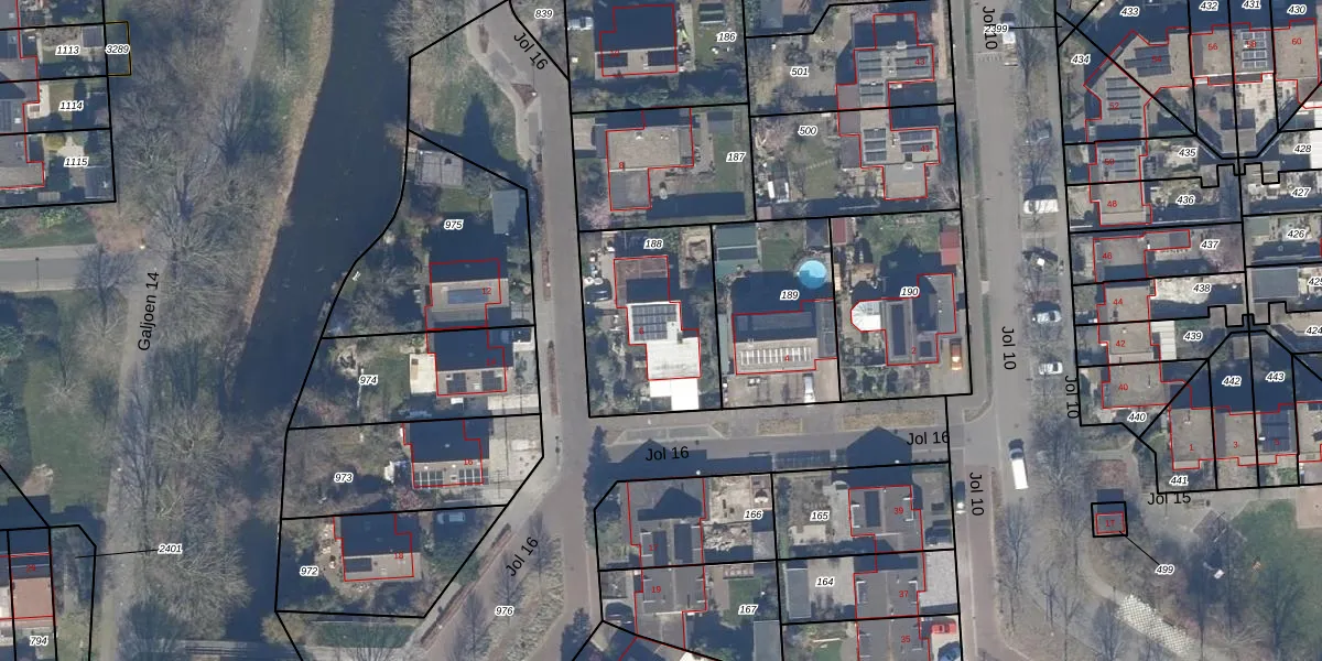 Gebruik de zoekbalk of klik op een perceel voor informatie over de adressen binnen dit perceel.