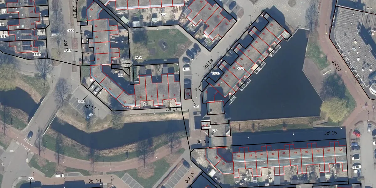 Het perceel waarop Jol 17 2-T staat heeft een oppervlakte van 20 m². Dit is een klein perceel. De perceeloppervlakte wordt geregistreerd door het Kadaster. Gedetailleerde informatie over de maten van dit perceel kunt u vinden in het rapport Kadastrale kaart met maatvoering van Jol 17 2-T.