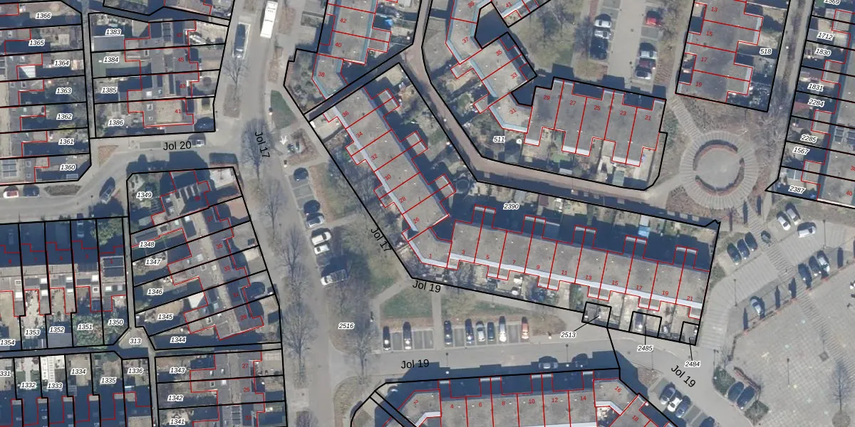 Jol 17 26 is gelegen op kadastraal perceel LLS00N2390. Deze kadastrale aanduiding is uniek en wordt gebruikt door het Kadaster om eigendomsrechten en andere zakelijke rechten vast te leggen. Het perceel maakt onderdeel uit van de kadastrale gemeente Lelystad.