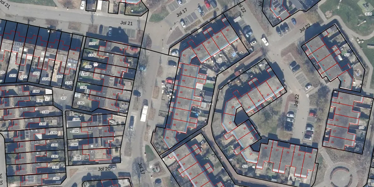 Jol 17 46 is gelegen op kadastraal perceel LLS00N512. Deze kadastrale aanduiding is uniek en wordt gebruikt door het Kadaster om eigendomsrechten en andere zakelijke rechten vast te leggen. Het perceel maakt onderdeel uit van de kadastrale gemeente Lelystad.