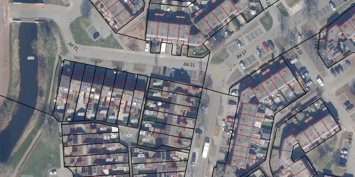 Gebruik de zoekbalk of klik op een perceel voor informatie over de adressen binnen dit perceel.