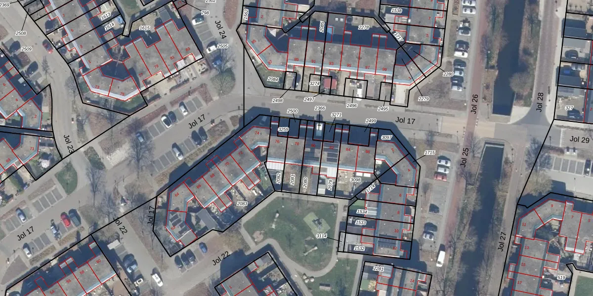 Jol 17 78 is gelegen op kadastraal perceel LLS00N2081. Deze kadastrale aanduiding is uniek en wordt gebruikt door het Kadaster om eigendomsrechten en andere zakelijke rechten vast te leggen. Het perceel maakt onderdeel uit van de kadastrale gemeente Lelystad.