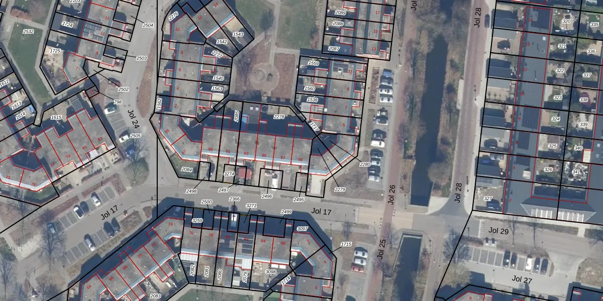 Het perceel waarop Jol 17 99 staat heeft een oppervlakte van 546 m². Dit is een groot perceel. De perceeloppervlakte wordt geregistreerd door het Kadaster. Gedetailleerde informatie over de maten van dit perceel kunt u vinden in het rapport Kadastrale kaart met maatvoering van Jol 17 99.