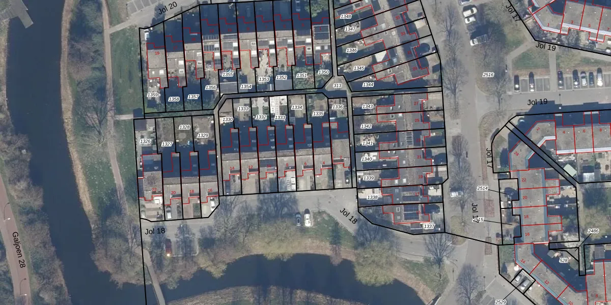 Jol 18 6 is gelegen op kadastraal perceel LLS00N1334. Deze kadastrale aanduiding is uniek en wordt gebruikt door het Kadaster om eigendomsrechten en andere zakelijke rechten vast te leggen. Het perceel maakt onderdeel uit van de kadastrale gemeente Lelystad.