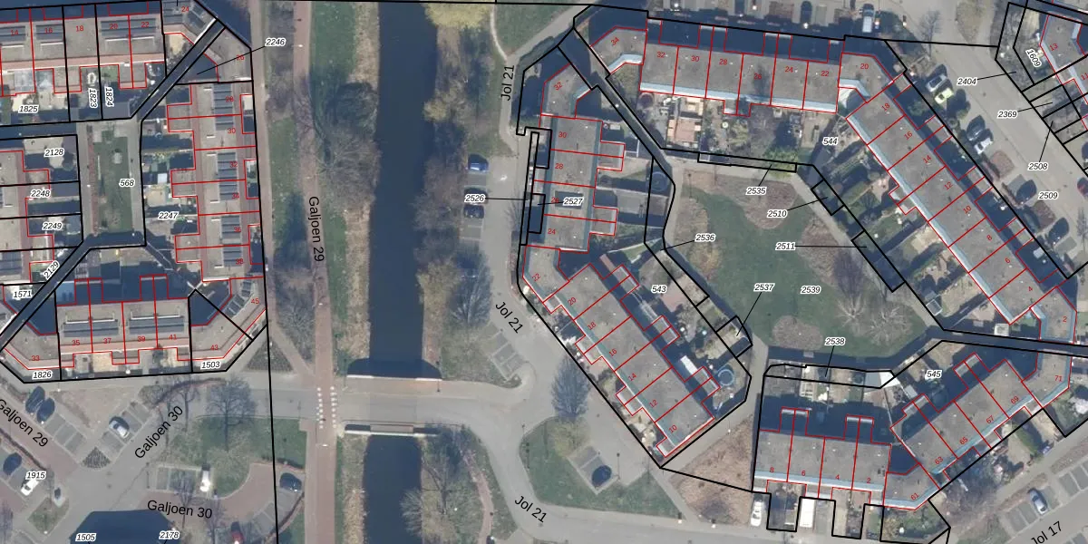 Jol 21 22 is gelegen op kadastraal perceel LLS00N543. Deze kadastrale aanduiding is uniek en wordt gebruikt door het Kadaster om eigendomsrechten en andere zakelijke rechten vast te leggen. Het perceel maakt onderdeel uit van de kadastrale gemeente Lelystad.