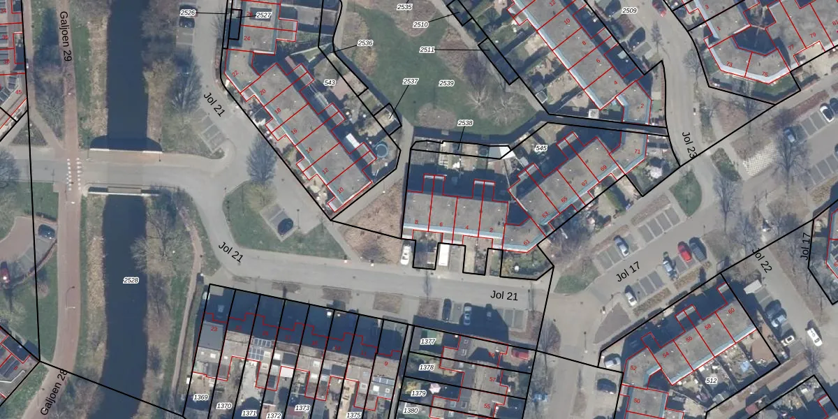 Jol 21 8 is gelegen op kadastraal perceel LLS00N545. Deze kadastrale aanduiding is uniek en wordt gebruikt door het Kadaster om eigendomsrechten en andere zakelijke rechten vast te leggen. Het perceel maakt onderdeel uit van de kadastrale gemeente Lelystad.