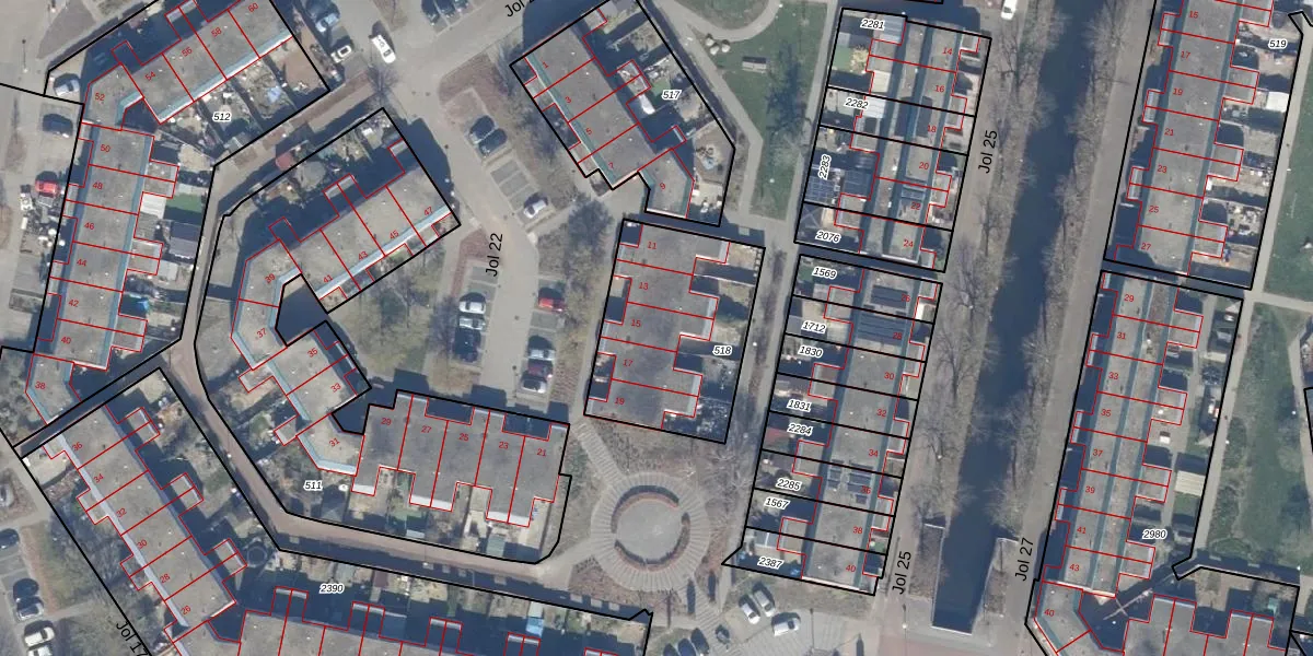 Het perceel waarop Jol 22 15 staat heeft een oppervlakte van 669 m². Dit is een groot perceel. De perceeloppervlakte wordt geregistreerd door het Kadaster. Gedetailleerde informatie over de maten van dit perceel kunt u vinden in het rapport Kadastrale kaart met maatvoering van Jol 22 15.