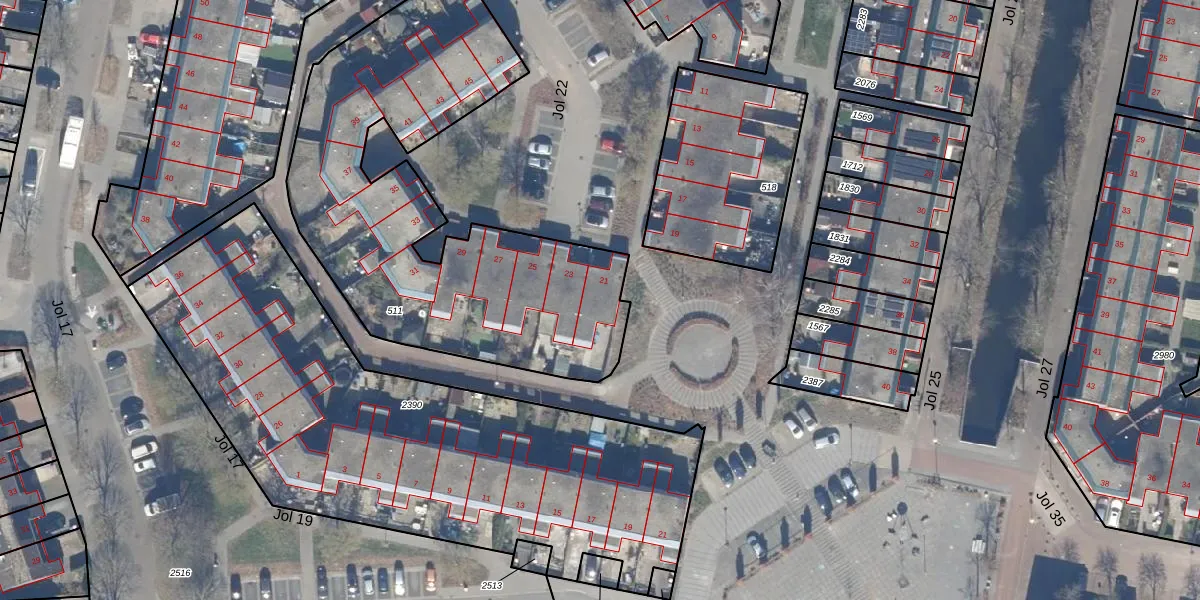 Jol 22 21 is gelegen op kadastraal perceel LLS00N511. Deze kadastrale aanduiding is uniek en wordt gebruikt door het Kadaster om eigendomsrechten en andere zakelijke rechten vast te leggen. Het perceel maakt onderdeel uit van de kadastrale gemeente Lelystad.