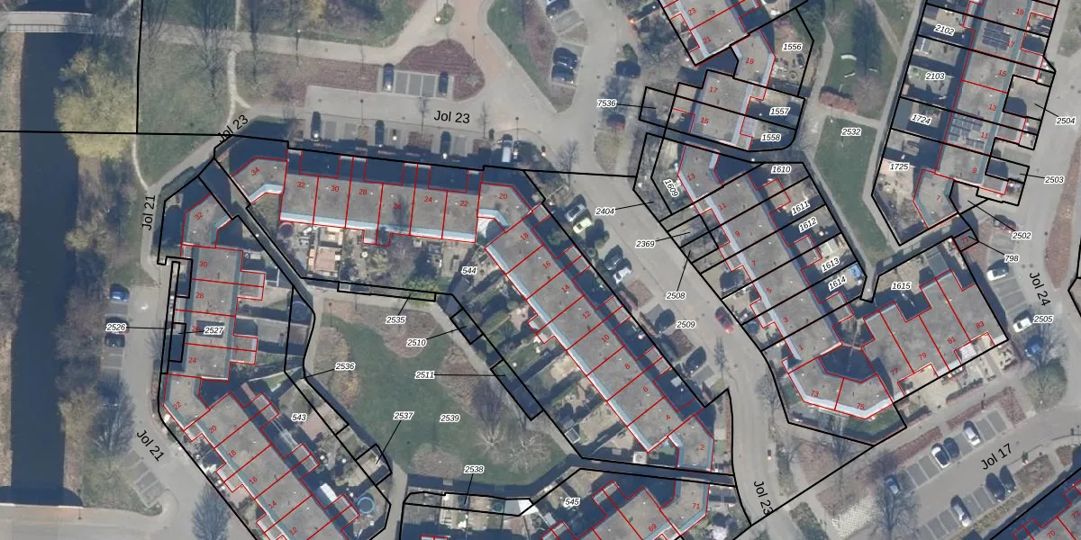 Het perceel waarop Jol 23 16 staat heeft een oppervlakte van 2370 m². Dit is een zeer groot perceel. De perceeloppervlakte wordt geregistreerd door het Kadaster. Gedetailleerde informatie over de maten van dit perceel kunt u vinden in het rapport Kadastrale kaart met maatvoering van Jol 23 16.