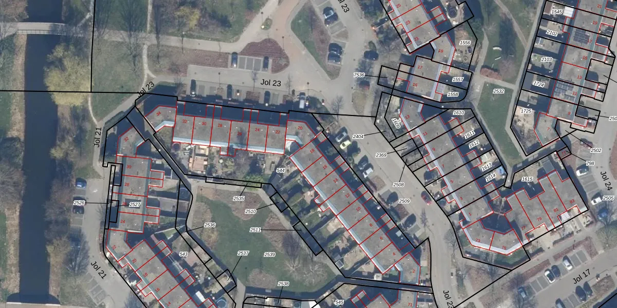 Het perceel waarop Jol 23 18 staat heeft een oppervlakte van 2370 m². Dit is een zeer groot perceel. De perceeloppervlakte wordt geregistreerd door het Kadaster. Gedetailleerde informatie over de maten van dit perceel kunt u vinden in het rapport Kadastrale kaart met maatvoering van Jol 23 18.