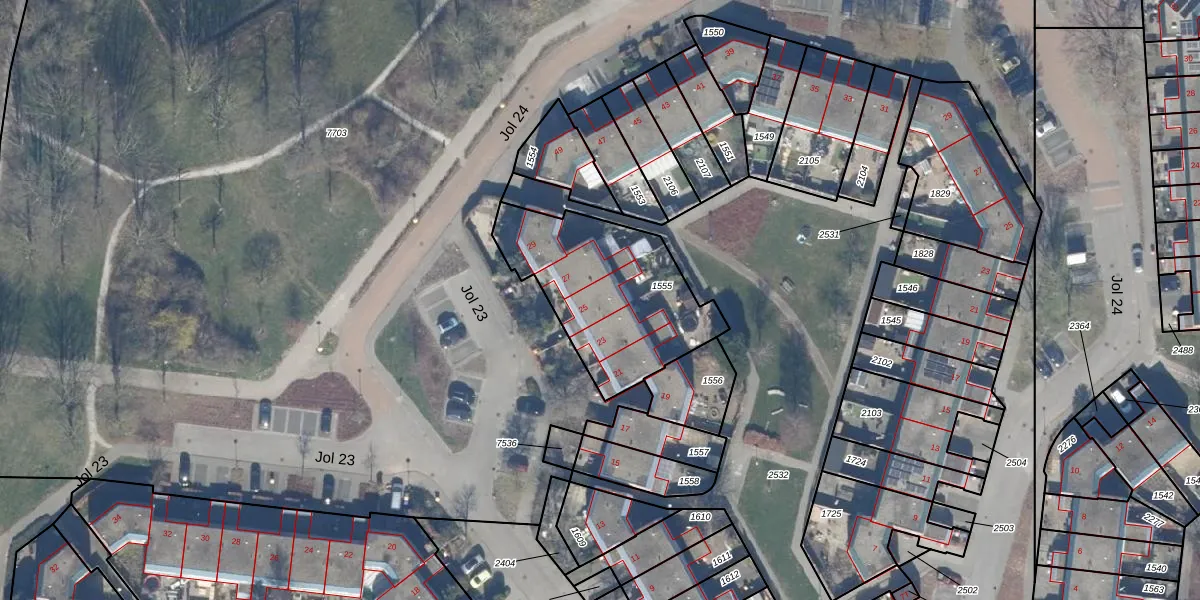 Het perceel waarop Jol 23 25 staat heeft een oppervlakte van 663 m². Dit is een groot perceel. De perceeloppervlakte wordt geregistreerd door het Kadaster. Gedetailleerde informatie over de maten van dit perceel kunt u vinden in het rapport Kadastrale kaart met maatvoering van Jol 23 25.