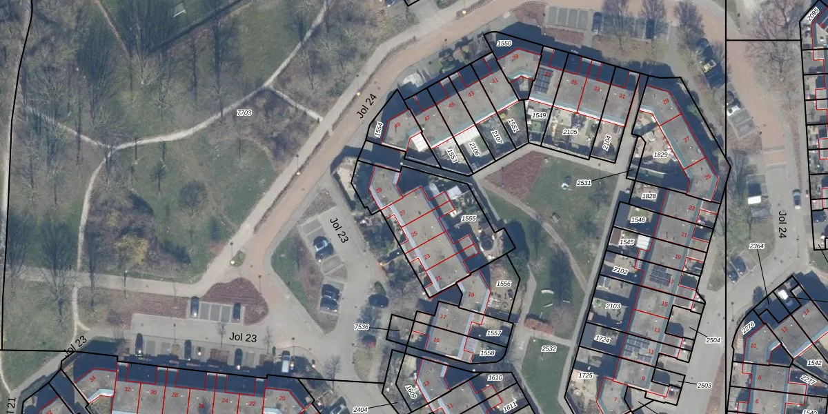 Het perceel waarop Jol 23 27 staat heeft een oppervlakte van 663 m². Dit is een groot perceel. De perceeloppervlakte wordt geregistreerd door het Kadaster. Gedetailleerde informatie over de maten van dit perceel kunt u vinden in het rapport Kadastrale kaart met maatvoering van Jol 23 27.