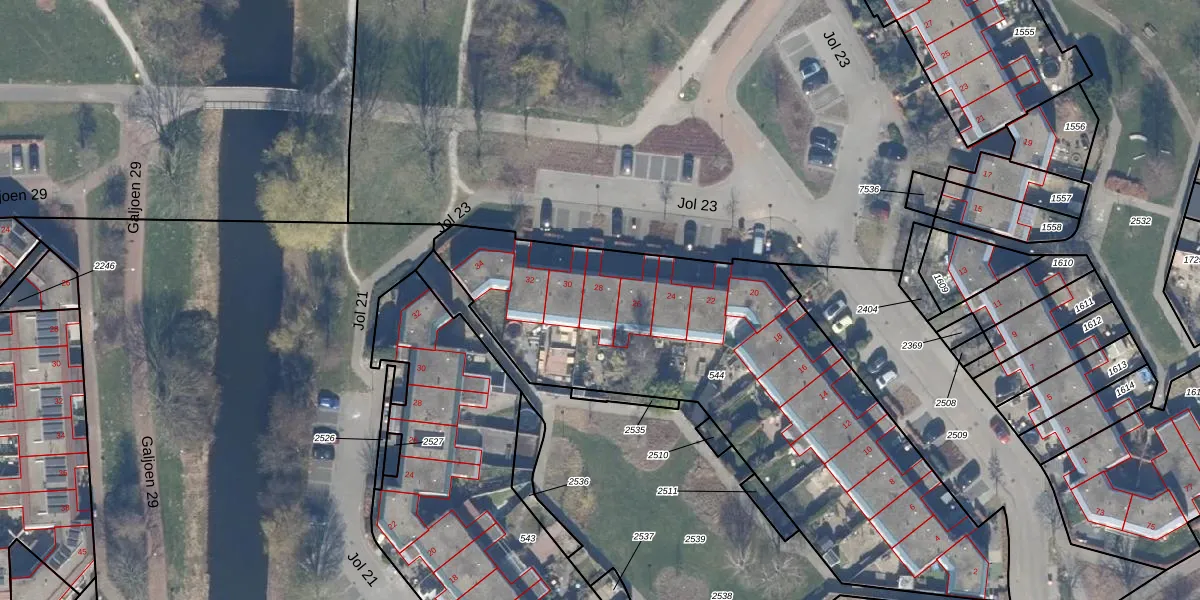Het perceel waarop Jol 23 28 staat heeft een oppervlakte van 2370 m². Dit is een zeer groot perceel. De perceeloppervlakte wordt geregistreerd door het Kadaster. Gedetailleerde informatie over de maten van dit perceel kunt u vinden in het rapport Kadastrale kaart met maatvoering van Jol 23 28.