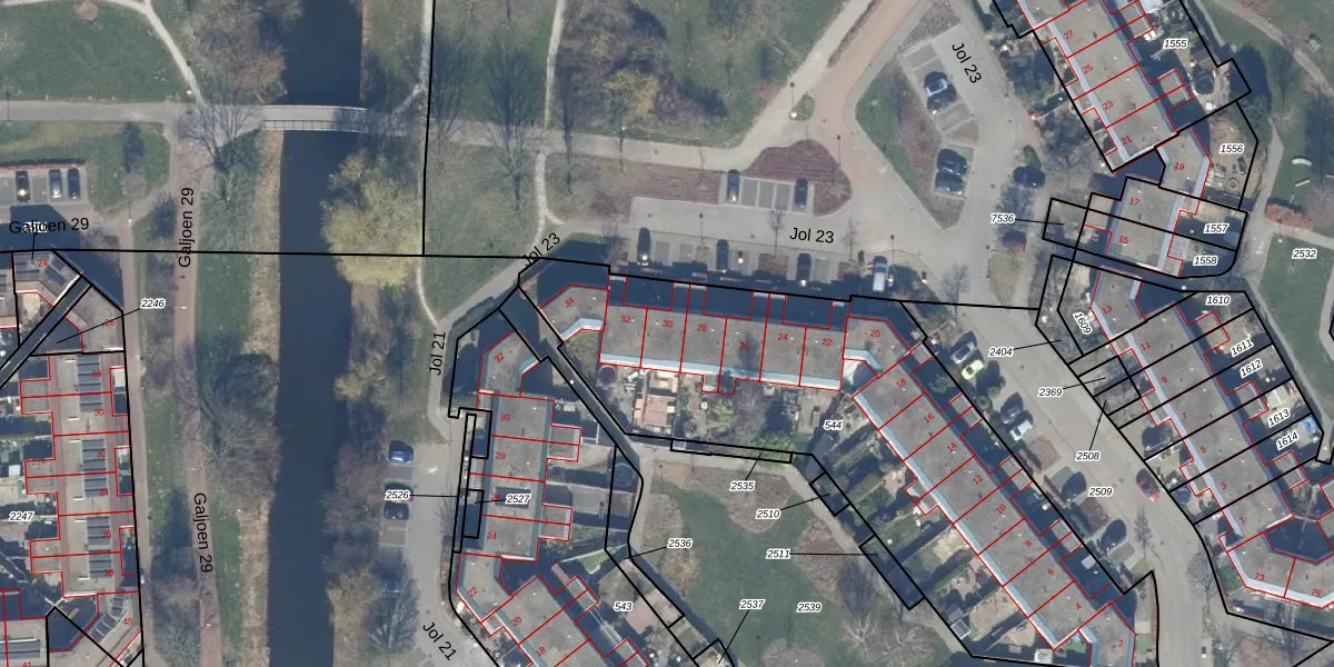 Jol 23 30 is gelegen op kadastraal perceel LLS00N544. Deze kadastrale aanduiding is uniek en wordt gebruikt door het Kadaster om eigendomsrechten en andere zakelijke rechten vast te leggen. Het perceel maakt onderdeel uit van de kadastrale gemeente Lelystad.