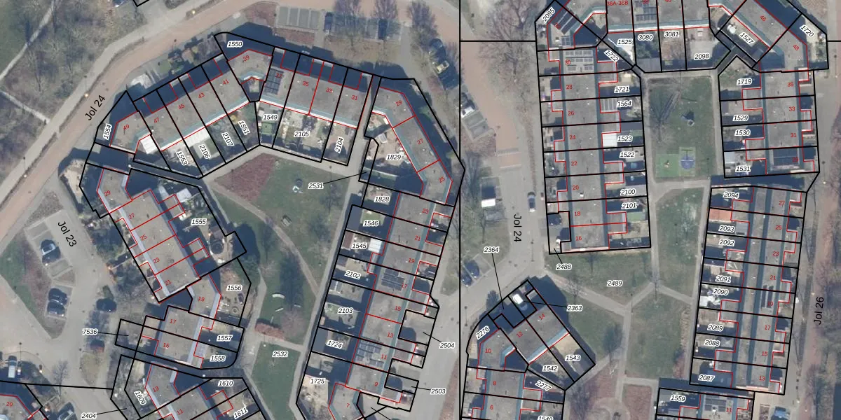 Het perceel waarop Jol 24 23 staat heeft een oppervlakte van 132 m². Dit is een middelgroot perceel. De perceeloppervlakte wordt geregistreerd door het Kadaster. Gedetailleerde informatie over de maten van dit perceel kunt u vinden in het rapport Kadastrale kaart met maatvoering van Jol 24 23.