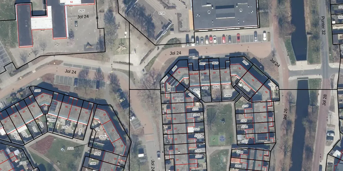 Jol 24 32 is gelegen op kadastraal perceel LLS00N2095. Deze kadastrale aanduiding is uniek en wordt gebruikt door het Kadaster om eigendomsrechten en andere zakelijke rechten vast te leggen. Het perceel maakt onderdeel uit van de kadastrale gemeente Lelystad.
