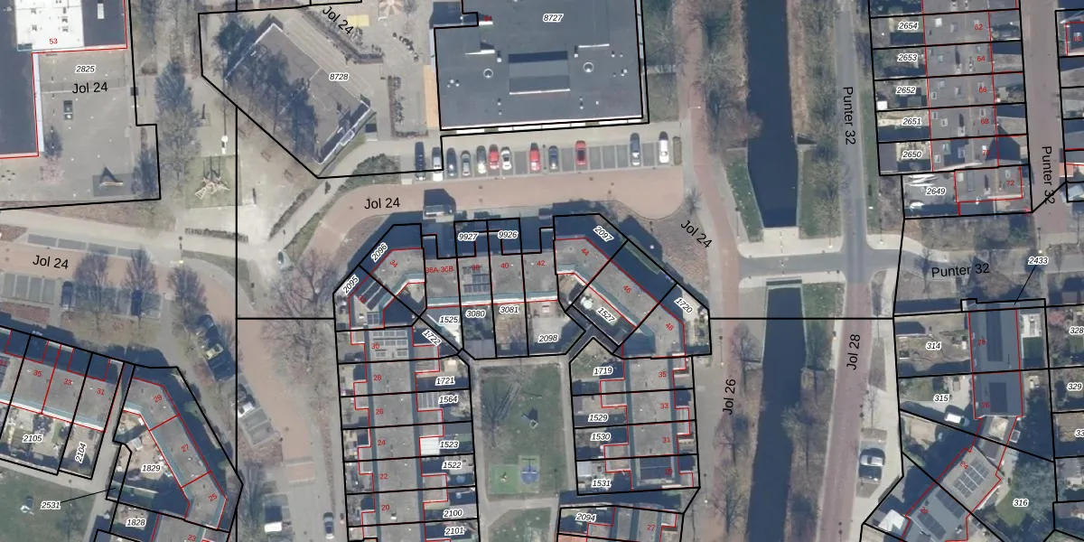 Jol 24 42 is gelegen op kadastraal perceel LLS00N2098. Deze kadastrale aanduiding is uniek en wordt gebruikt door het Kadaster om eigendomsrechten en andere zakelijke rechten vast te leggen. Het perceel maakt onderdeel uit van de kadastrale gemeente Lelystad.