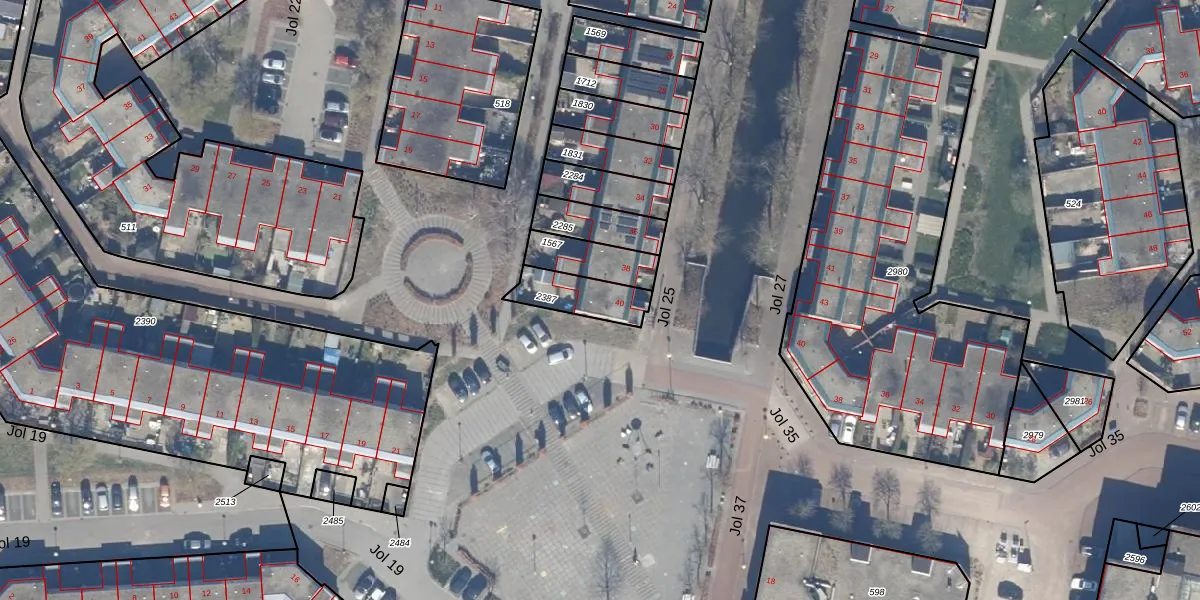 Jol 25 40 is gelegen op kadastraal perceel LLS00N2387. Deze kadastrale aanduiding is uniek en wordt gebruikt door het Kadaster om eigendomsrechten en andere zakelijke rechten vast te leggen. Het perceel maakt onderdeel uit van de kadastrale gemeente Lelystad.