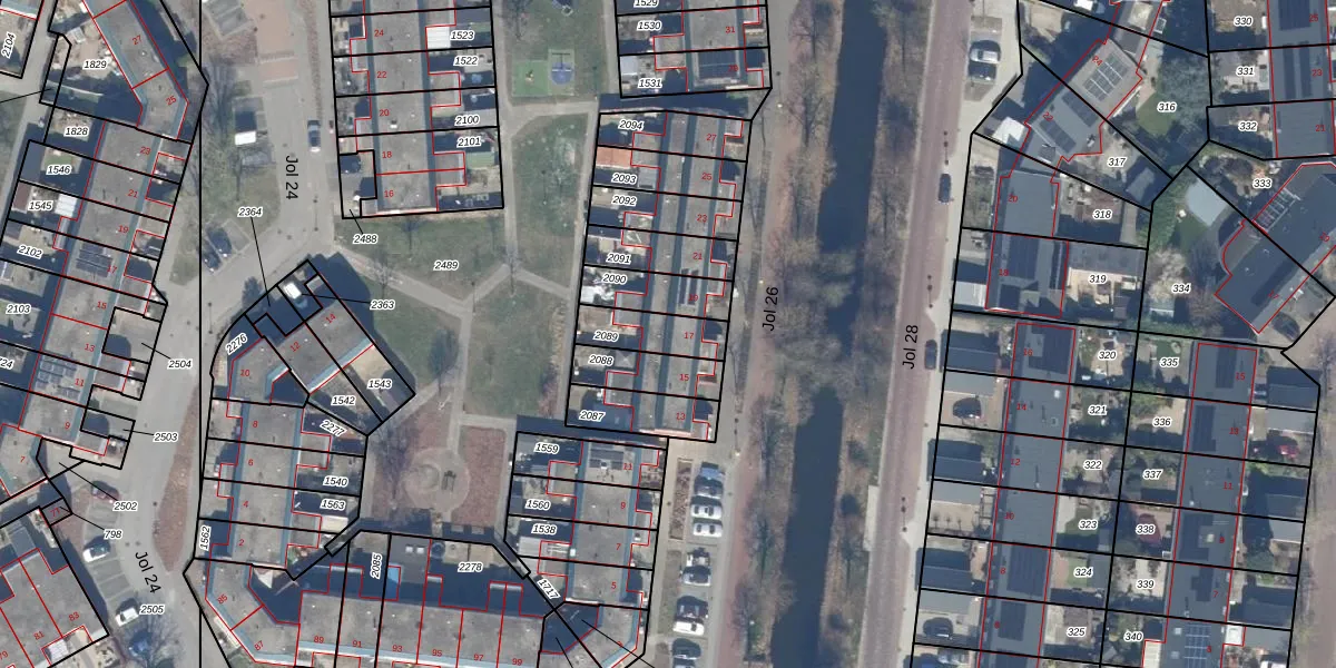 Gebruik de zoekbalk of klik op een perceel voor informatie over de adressen binnen dit perceel.