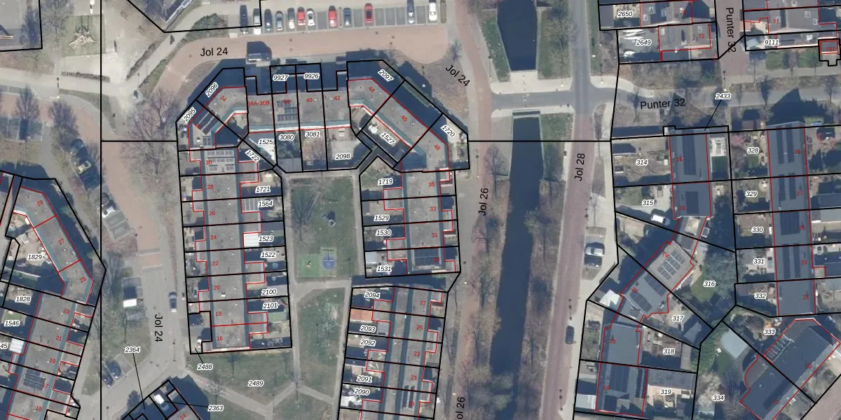 Jol 26 33 is gelegen op kadastraal perceel LLS00N1529. Deze kadastrale aanduiding is uniek en wordt gebruikt door het Kadaster om eigendomsrechten en andere zakelijke rechten vast te leggen. Het perceel maakt onderdeel uit van de kadastrale gemeente Lelystad.