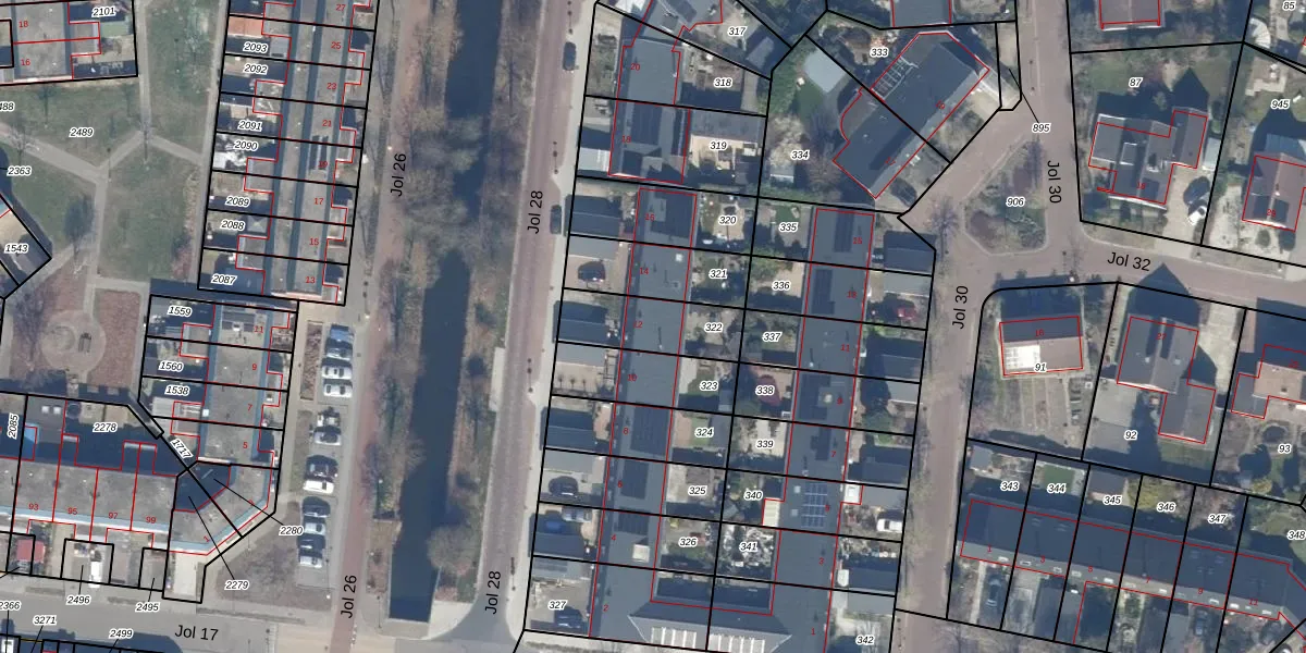 Jol 28 12 is gelegen op kadastraal perceel LLS00N322. Deze kadastrale aanduiding is uniek en wordt gebruikt door het Kadaster om eigendomsrechten en andere zakelijke rechten vast te leggen. Het perceel maakt onderdeel uit van de kadastrale gemeente Lelystad.