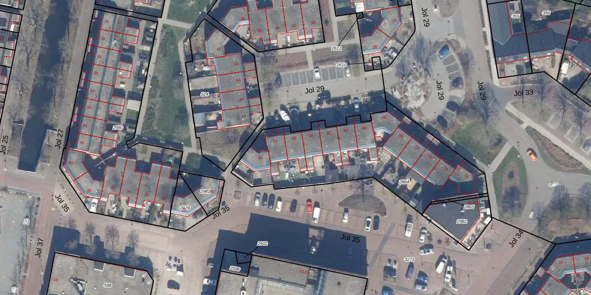 Jol 29 56 is gelegen op kadastraal perceel LLS00N2864. Deze kadastrale aanduiding is uniek en wordt gebruikt door het Kadaster om eigendomsrechten en andere zakelijke rechten vast te leggen. Het perceel maakt onderdeel uit van de kadastrale gemeente Lelystad.