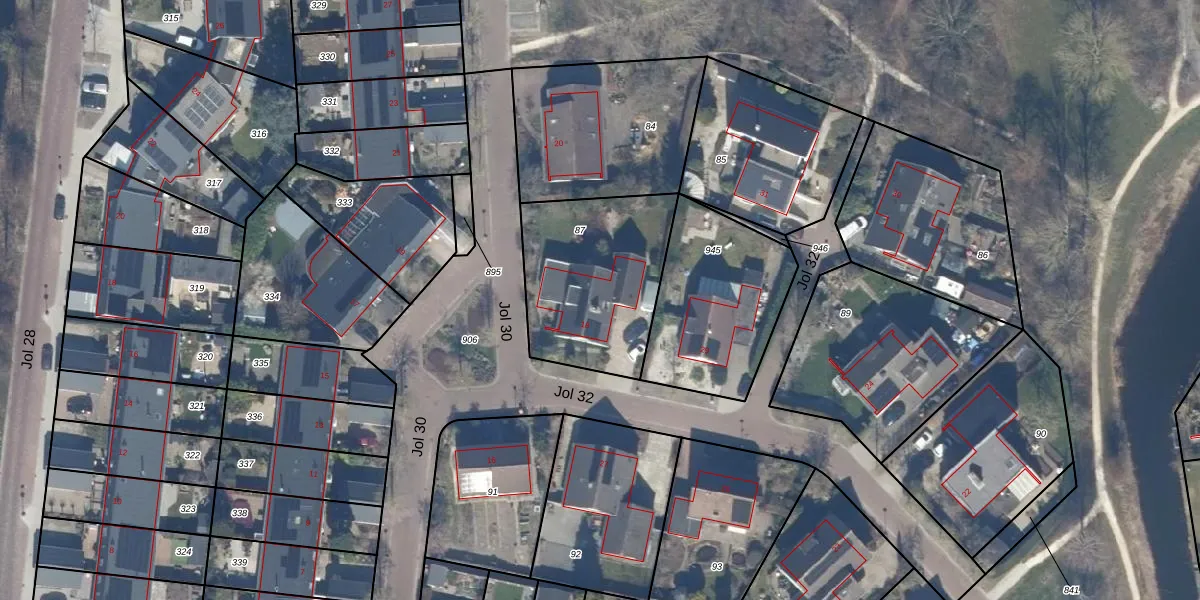 Het perceel waarop Jol 30 18 staat heeft een oppervlakte van 639 m². Dit is een groot perceel. De perceeloppervlakte wordt geregistreerd door het Kadaster. Gedetailleerde informatie over de maten van dit perceel kunt u vinden in het rapport Kadastrale kaart met maatvoering van Jol 30 18.