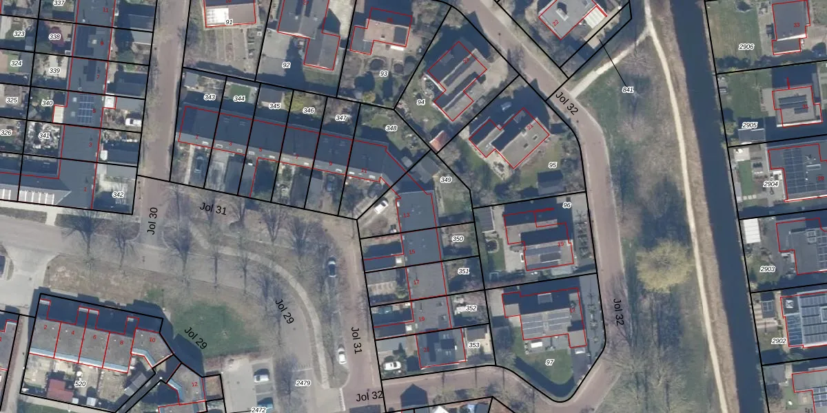 Het perceel waarop Jol 31 13 staat heeft een oppervlakte van 349 m². Dit is een groot perceel. De perceeloppervlakte wordt geregistreerd door het Kadaster. Gedetailleerde informatie over de maten van dit perceel kunt u vinden in het rapport Kadastrale kaart met maatvoering van Jol 31 13.