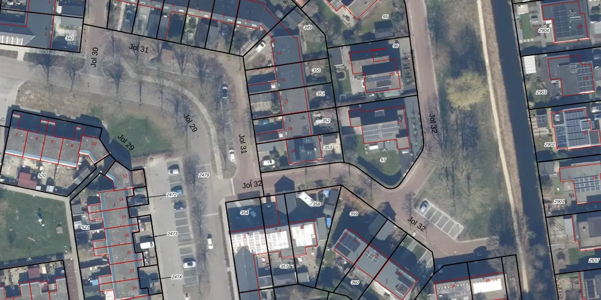 Gebruik de zoekbalk of klik op een perceel voor informatie over de adressen binnen dit perceel.