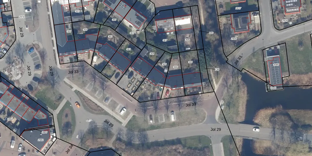 Het perceel waarop Jol 33 11 staat heeft een oppervlakte van 386 m². Dit is een groot perceel. De perceeloppervlakte wordt geregistreerd door het Kadaster. Gedetailleerde informatie over de maten van dit perceel kunt u vinden in het rapport Kadastrale kaart met maatvoering van Jol 33 11.