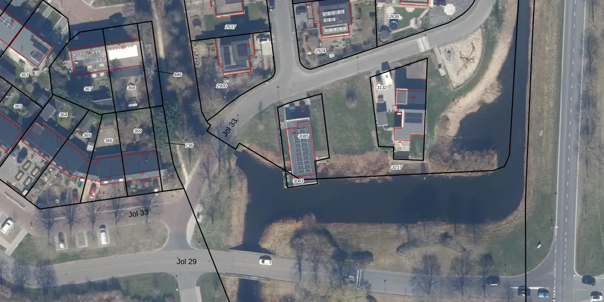 Jol 33 40 is gelegen op kadastraal perceel LLS00N3085. Deze kadastrale aanduiding is uniek en wordt gebruikt door het Kadaster om eigendomsrechten en andere zakelijke rechten vast te leggen. Het perceel maakt onderdeel uit van de kadastrale gemeente Lelystad.