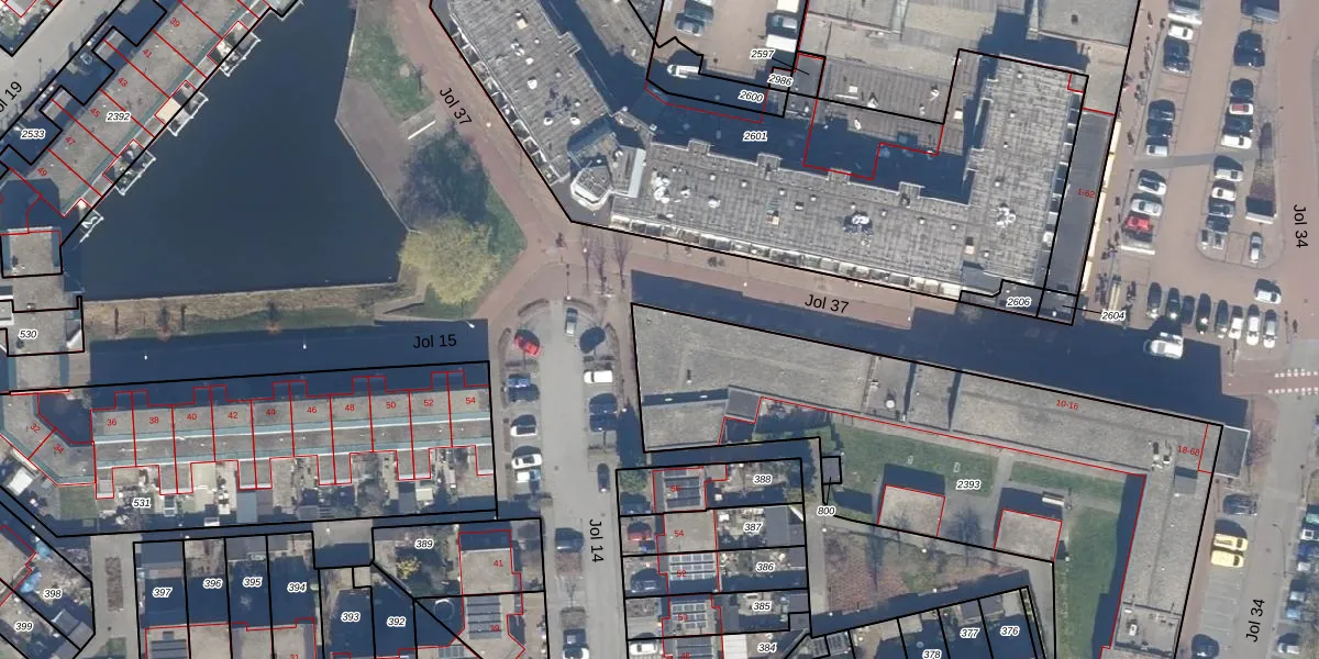Jol 34 12 is gelegen op kadastraal perceel LLS00N2393. Deze kadastrale aanduiding is uniek en wordt gebruikt door het Kadaster om eigendomsrechten en andere zakelijke rechten vast te leggen. Het perceel maakt onderdeel uit van de kadastrale gemeente Lelystad.
