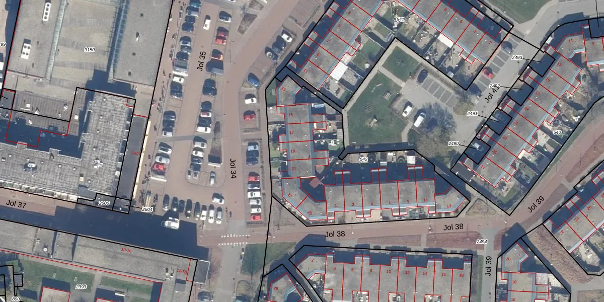 Jol 34 19 is gelegen op kadastraal perceel LLS00N542. Deze kadastrale aanduiding is uniek en wordt gebruikt door het Kadaster om eigendomsrechten en andere zakelijke rechten vast te leggen. Het perceel maakt onderdeel uit van de kadastrale gemeente Lelystad.