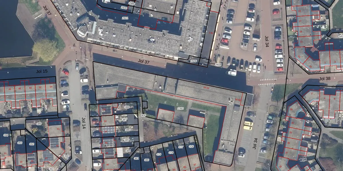 Jol 34 24 is gelegen op kadastraal perceel LLS00N2393. Deze kadastrale aanduiding is uniek en wordt gebruikt door het Kadaster om eigendomsrechten en andere zakelijke rechten vast te leggen. Het perceel maakt onderdeel uit van de kadastrale gemeente Lelystad.