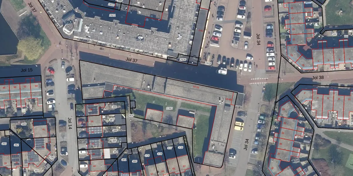 Jol 34 26 is gelegen op kadastraal perceel LLS00N2393. Deze kadastrale aanduiding is uniek en wordt gebruikt door het Kadaster om eigendomsrechten en andere zakelijke rechten vast te leggen. Het perceel maakt onderdeel uit van de kadastrale gemeente Lelystad.