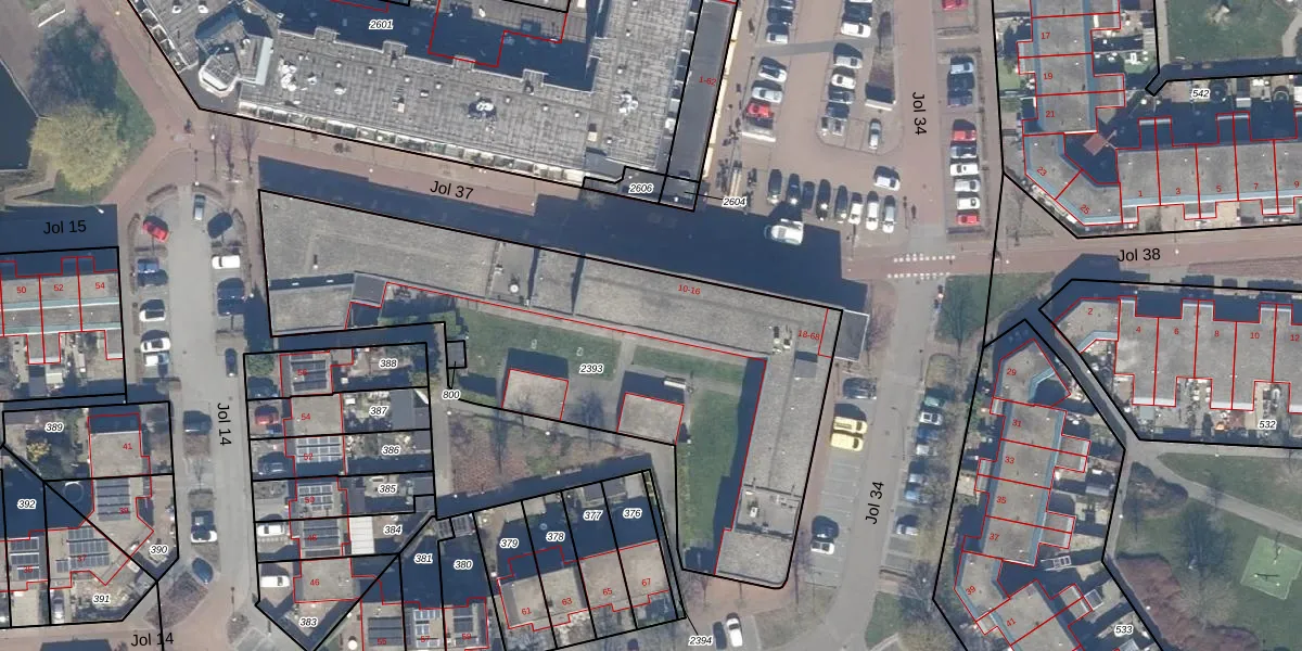 Jol 34 46 is gelegen op kadastraal perceel LLS00N2393. Deze kadastrale aanduiding is uniek en wordt gebruikt door het Kadaster om eigendomsrechten en andere zakelijke rechten vast te leggen. Het perceel maakt onderdeel uit van de kadastrale gemeente Lelystad.
