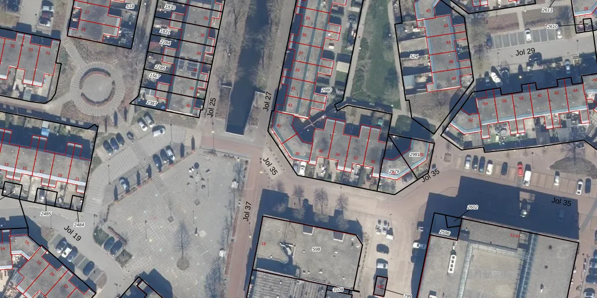 Het perceel waarop Jol 35 38 staat heeft een oppervlakte van 1865 m². Dit is een zeer groot perceel. De perceeloppervlakte wordt geregistreerd door het Kadaster. Gedetailleerde informatie over de maten van dit perceel kunt u vinden in het rapport Kadastrale kaart met maatvoering van Jol 35 38.