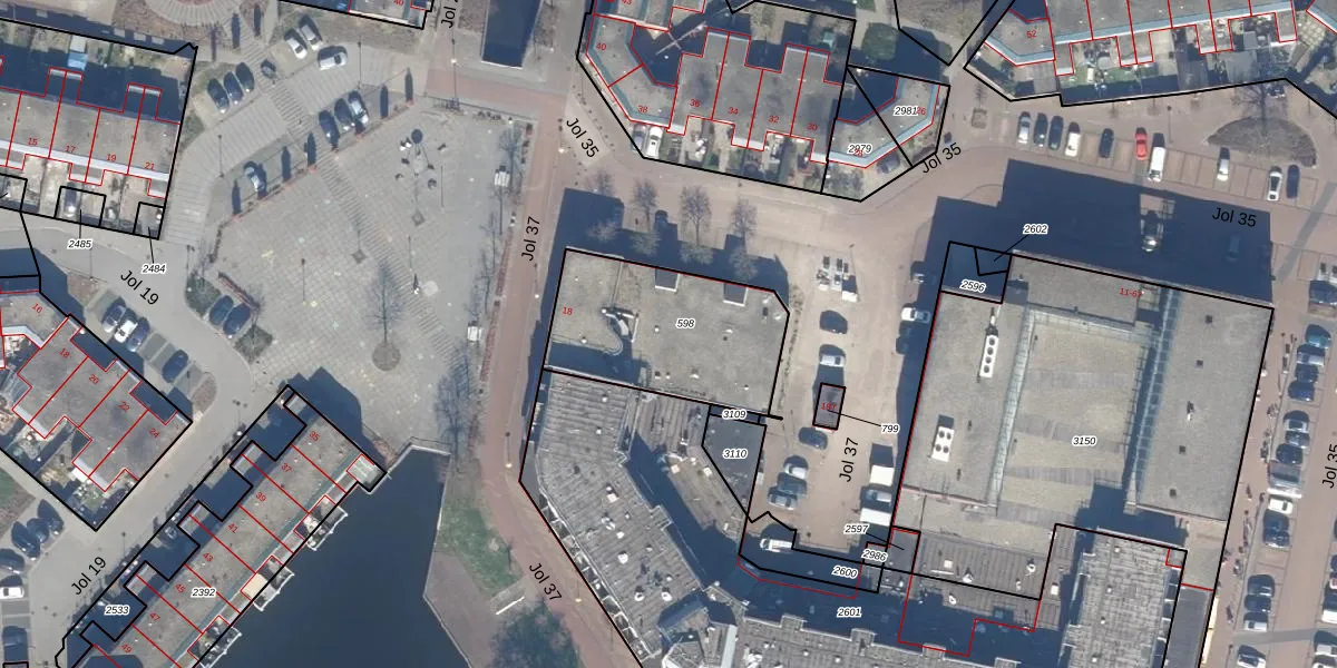 Jol 37 18 is gelegen op kadastraal perceel LLS00N598. Deze kadastrale aanduiding is uniek en wordt gebruikt door het Kadaster om eigendomsrechten en andere zakelijke rechten vast te leggen. Het perceel maakt onderdeel uit van de kadastrale gemeente Lelystad.